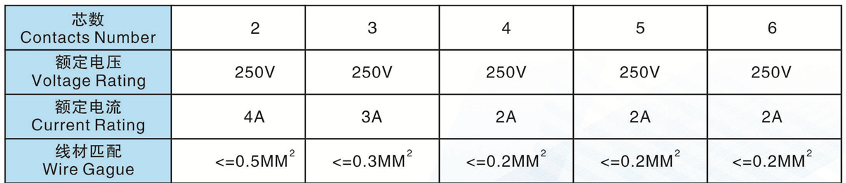 芯數(Contacts  Number):   2 -6芯
