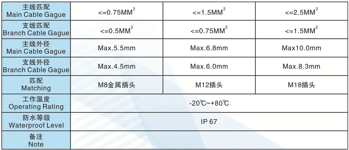 支線匹配(Branch Cable Gague):<=0.75MM2